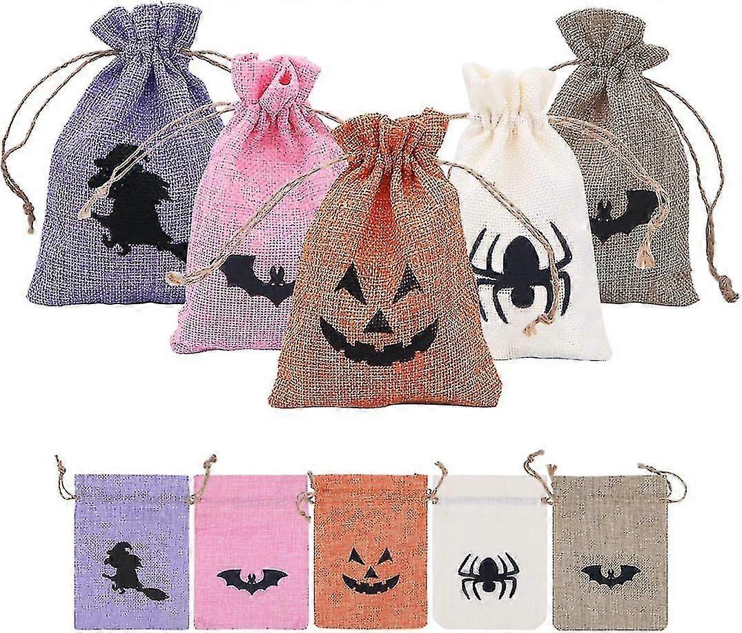 20 Pcs Halloween Drawstring Gift Bags - Colorful Burlap Bags For Delights!