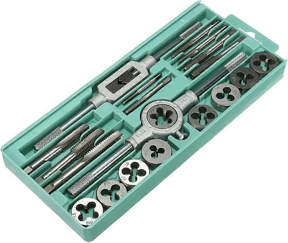 20pcs Stainless Steel Tap and Die Set for Tungsten Steel Threading, Metal Box