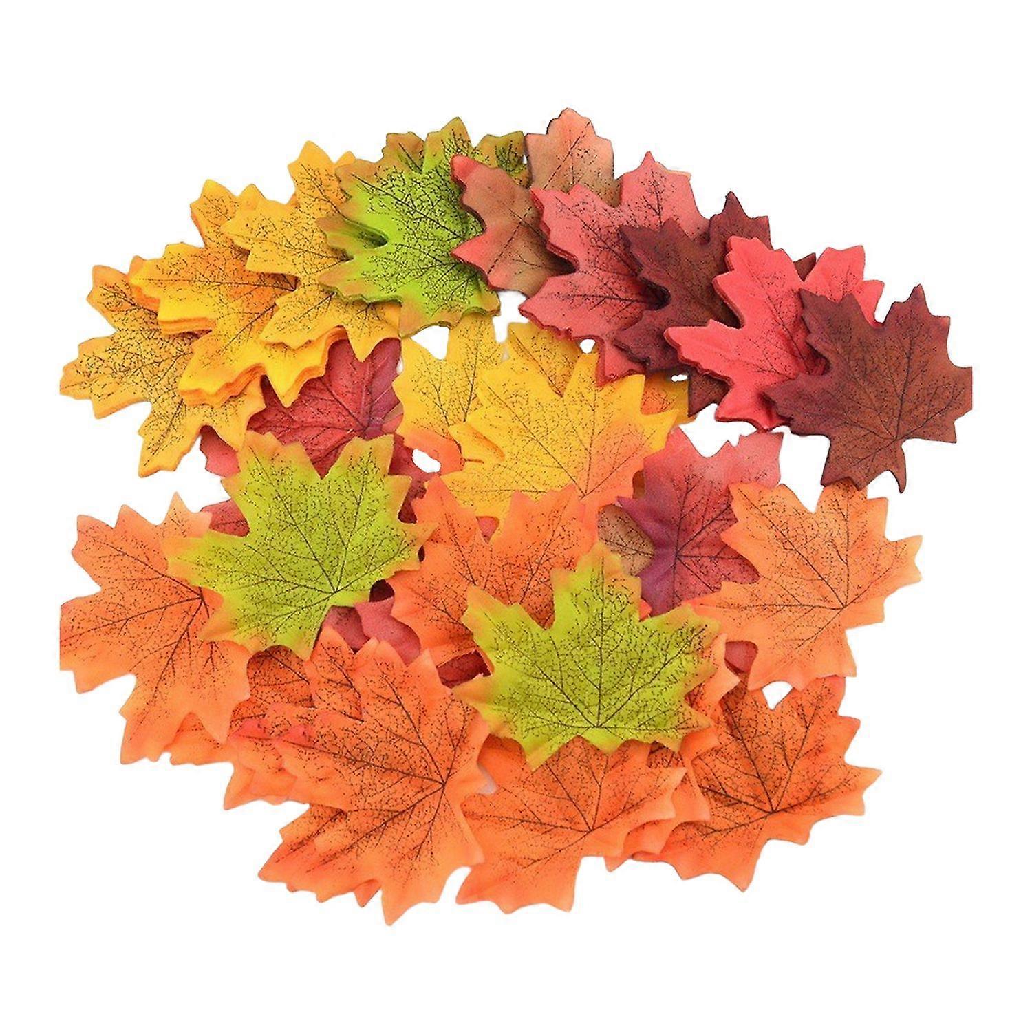 200Pcs Artificial Maple Leaf Realistic Fake Silk Colorful Fall Maple Leaves Decoration Halloween