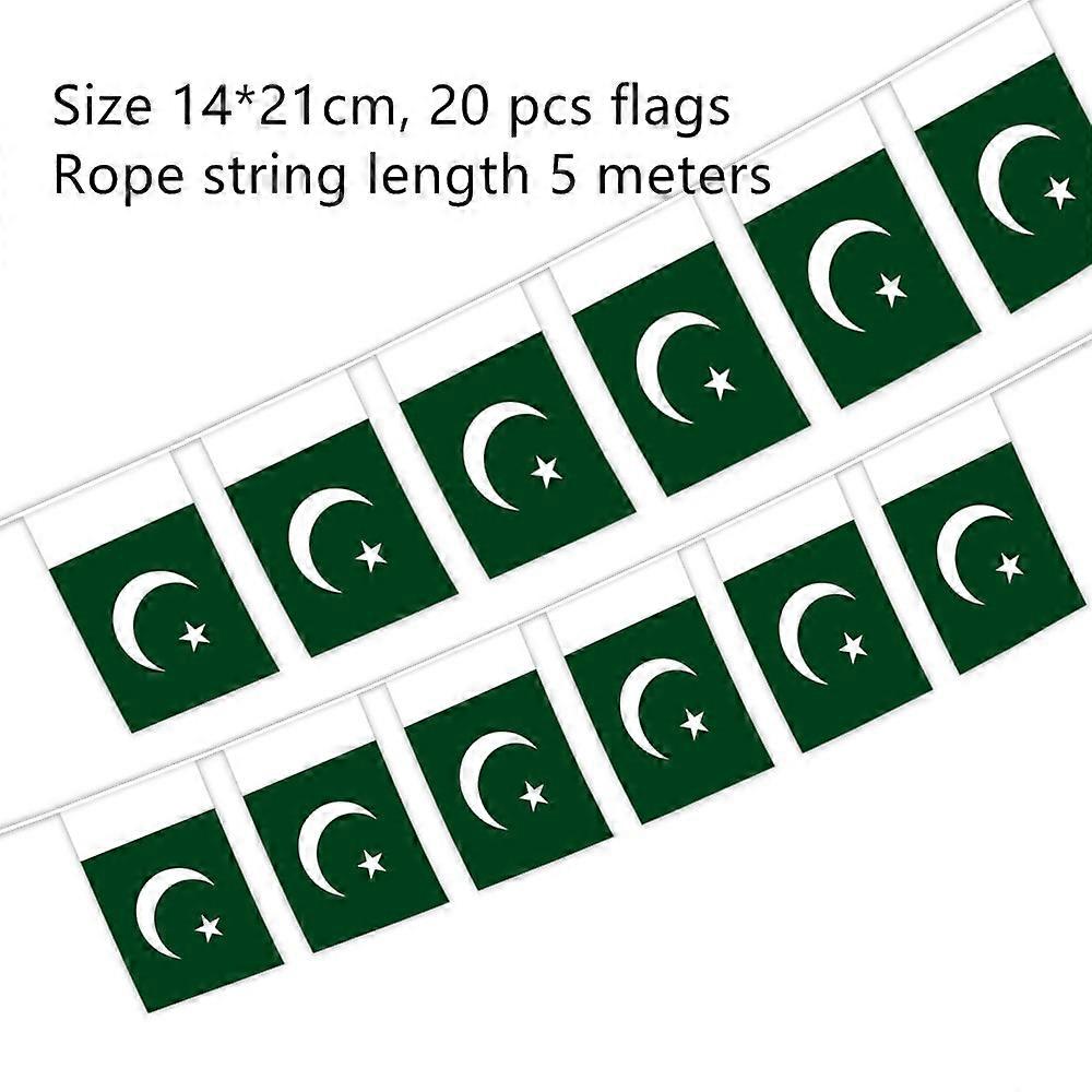20Pcs Flags One String National Flag Lines Hang On One Rope Pakistan Buntings 14*21cm Stream Banner String Pakistan Banner Flags