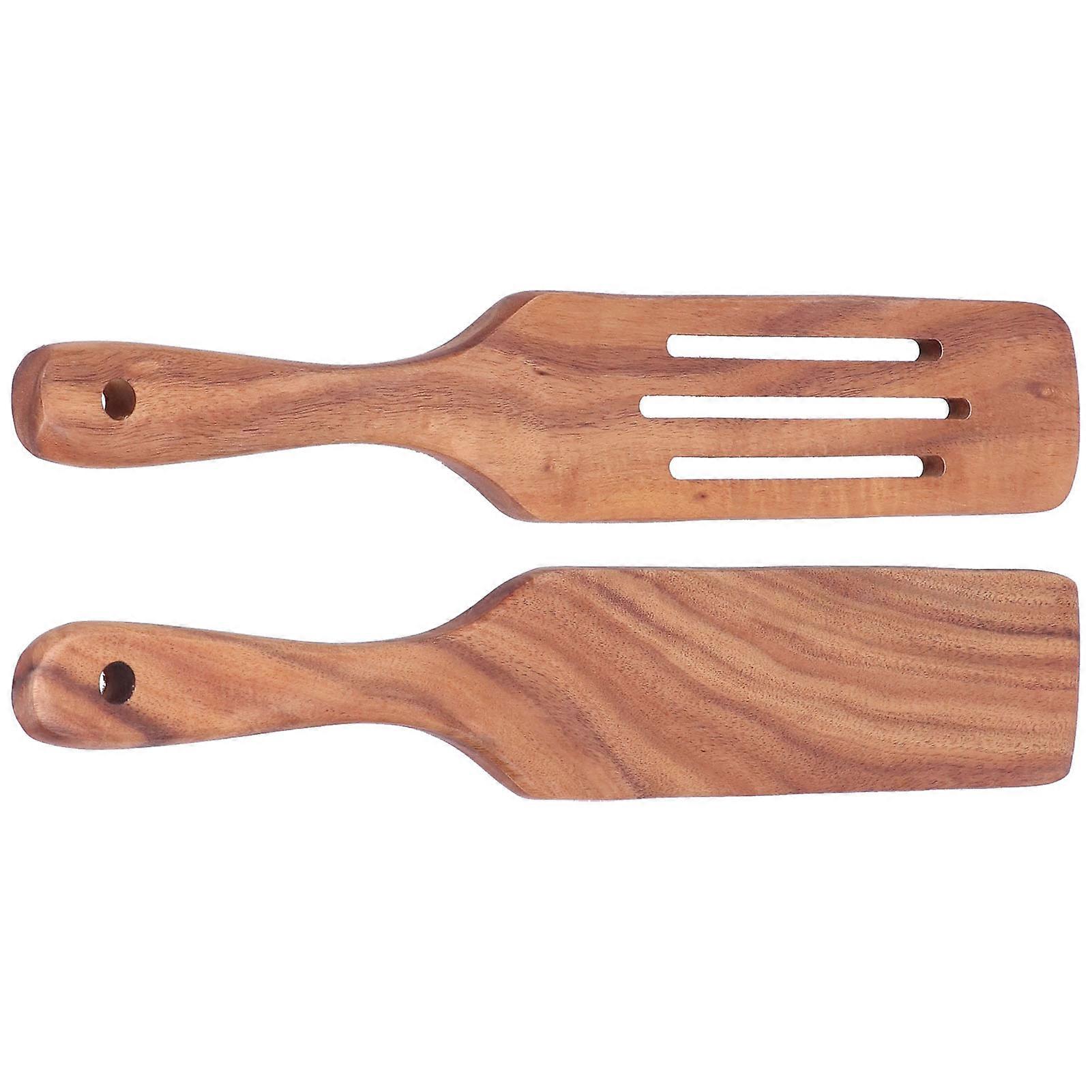 2pcs Slotted Turner Spatula Simple Wooden Spatula with Long Handlefor Cooking Salad Mixing
