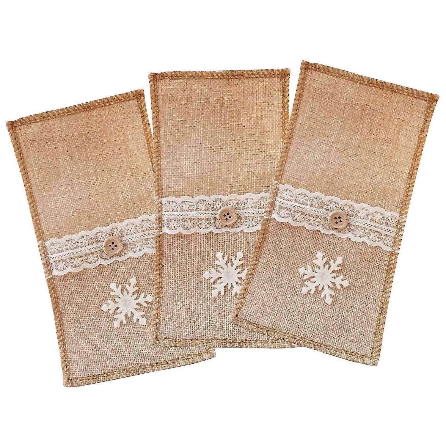 3Pcs/Set Burlap Cutlery Holder Lace Tableware Knife Fork Pouch Pocket Christmas Tablet Decoration
