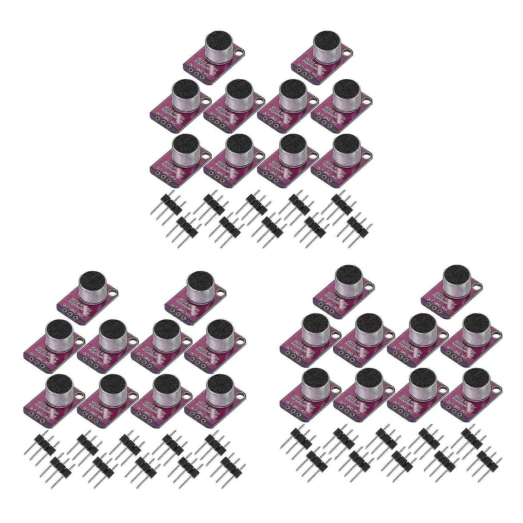 30 PCS Electret Microphone Amplifier Adjustable MAX4466 Module Microphone Preamplifier Purple Breakout Board for Arduino