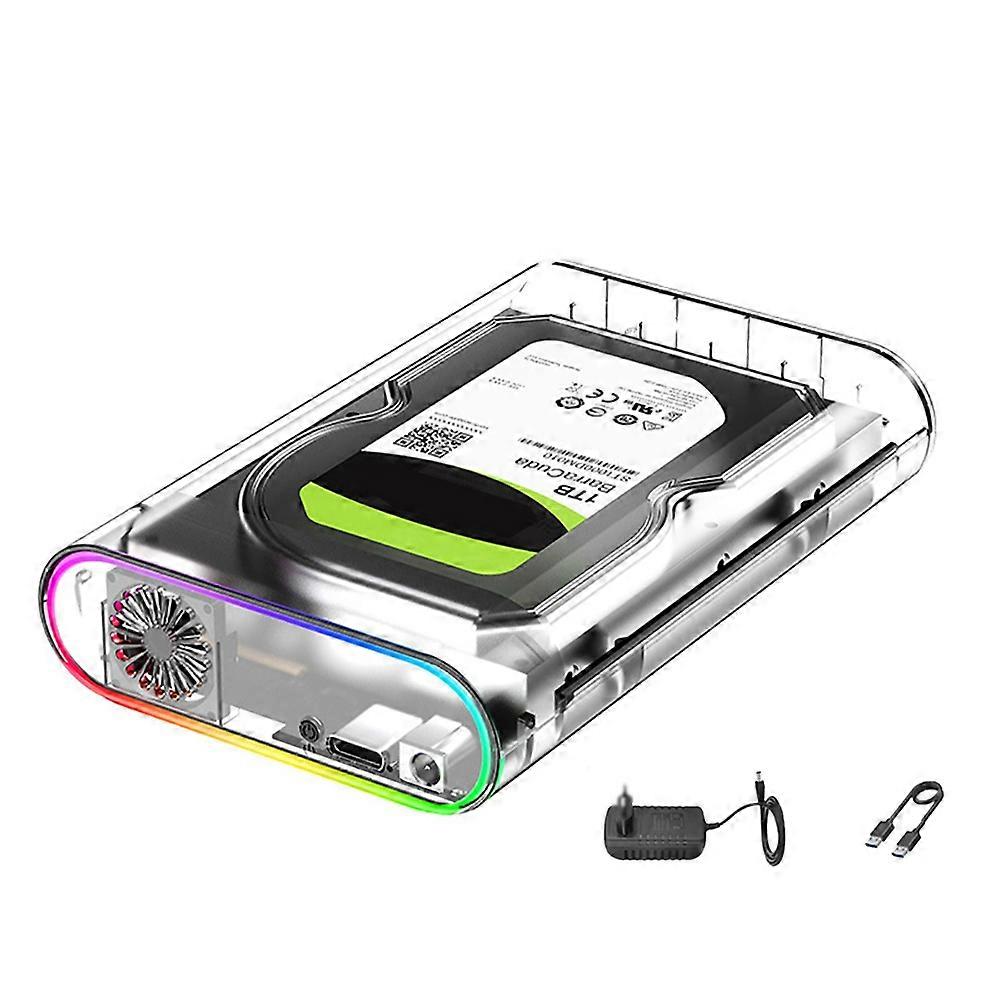 3.5IN HDD/SSD Enclosure Transparent USB 3.0 Type C to SATA External HDD Case Support 28TB SSD RGB Colorful Light US Plug