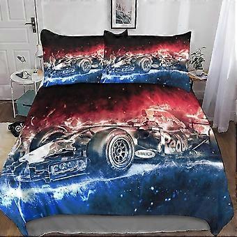 3D Formula 1 sengetøy sett for gutter og tenåringer F1 dynetrekk, mikrofiber dynetrekk med glidelåslukking 3 stk doble putevar