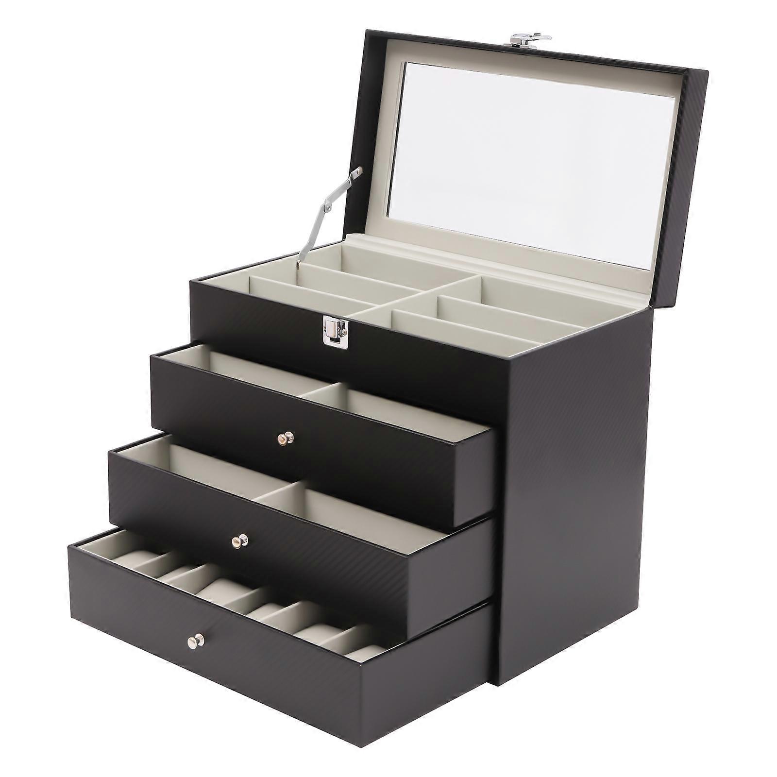 4 Layers Eyeglasses Storage and Sunglass Glasses Display Drawer Lockable Case Organizer