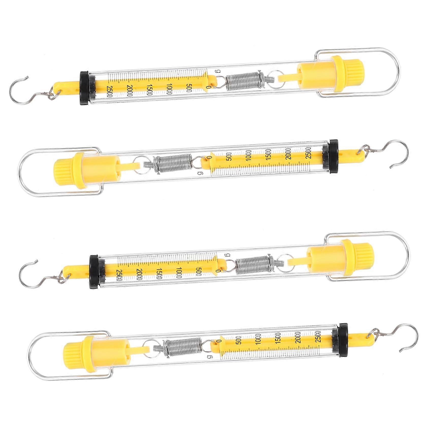 4-Pack Spring Scale - Analog Dynamometer for Physics Weighing, 10N to 50N Capacity, Yellow Plastic Hook Design