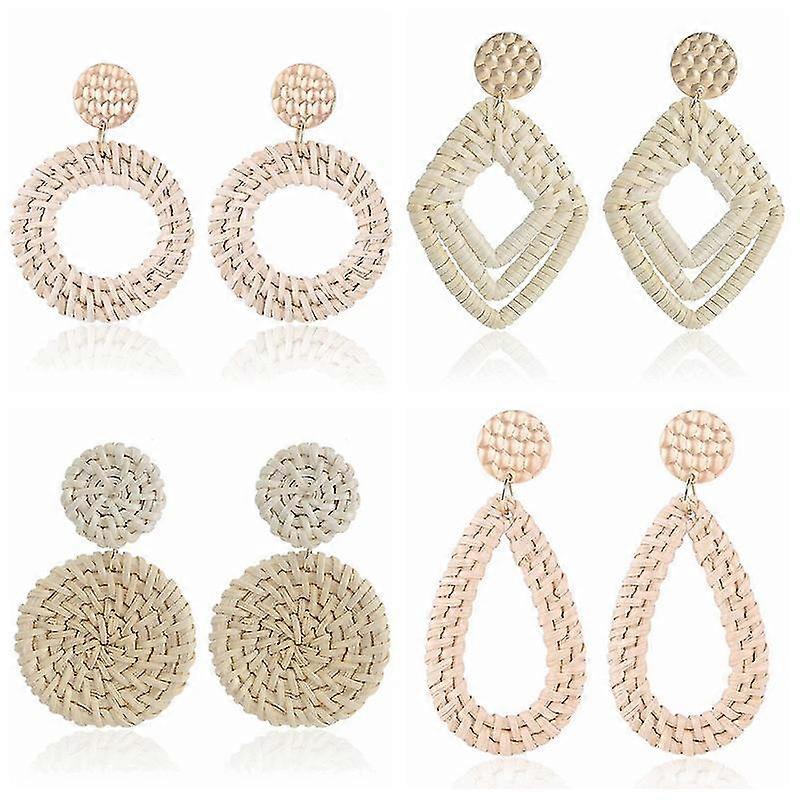 4 Pairs Creative Hand-woven Earrings Retro Exaggerated Earrings Bamboo Rattan Hand-woven Earrings Ethnic Style Rattan Earrings 4 Pair Apricot Zinuo Bo