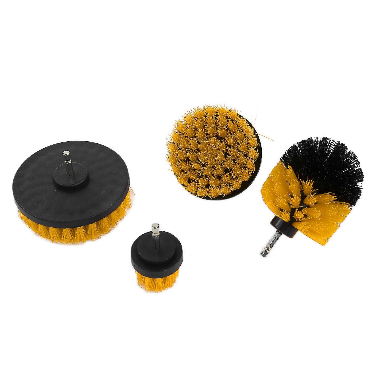 4pcs Yellow Drill Brush Set Cleaning Tool for Car Truck Bikes