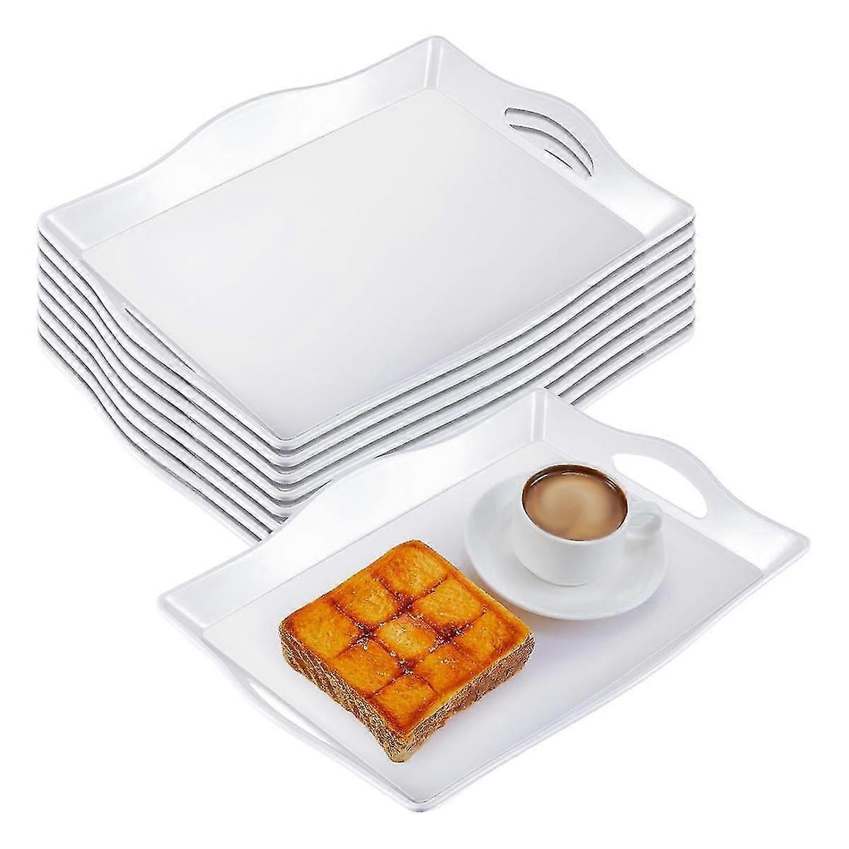 4 Pcs Food Serving Trays for Party Plastic Trays with Handles 13 x 10 Inch Rectangular Buffet Plast