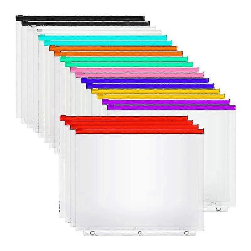 40Pcs Binder Pockets A4 Size 3 Hole Binder Pockets with Zipper Binder for 3-Ring Binder Loose Leaf Bags Waterproof Edition