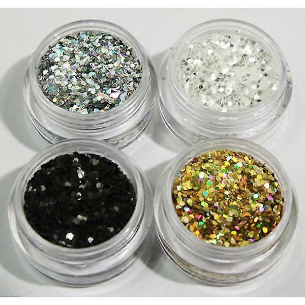 Glitter packaged in 8ml jars total weight approx. 12g per jar! A glitter that you can have for everything! Body Hair Nails Makeup Crafts Or what can you come up with with it? Color: Silver, White ice, Black & Gold Size of the jars: 3cm in diameter 8ml Brand: Otego Hexagon glitter in basic colors, the glitter can be used for everything, including nails, makeup, hair or why not use it for some crafts 4pcs hexagon glitter in the colors silver, white ice, black & gold, Size of the jars: 3cm in diameter, 8ml, weight approx. 12g per jar