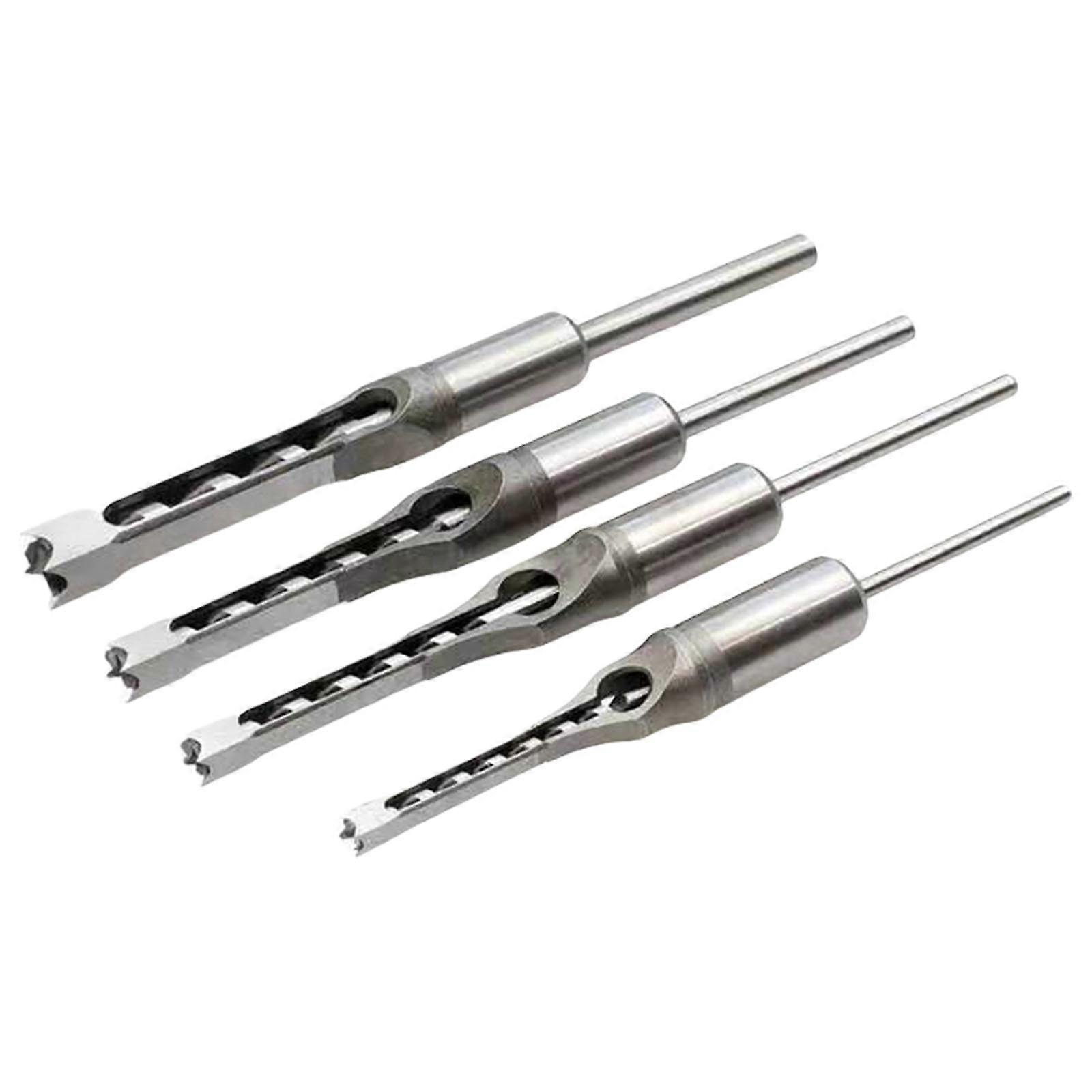 4pcs Square Hole Mortise Chisel Drill Bit Set for DIYer Enthusiasts Woodworking with HSS Construction in Multiple Sizes Multicolor