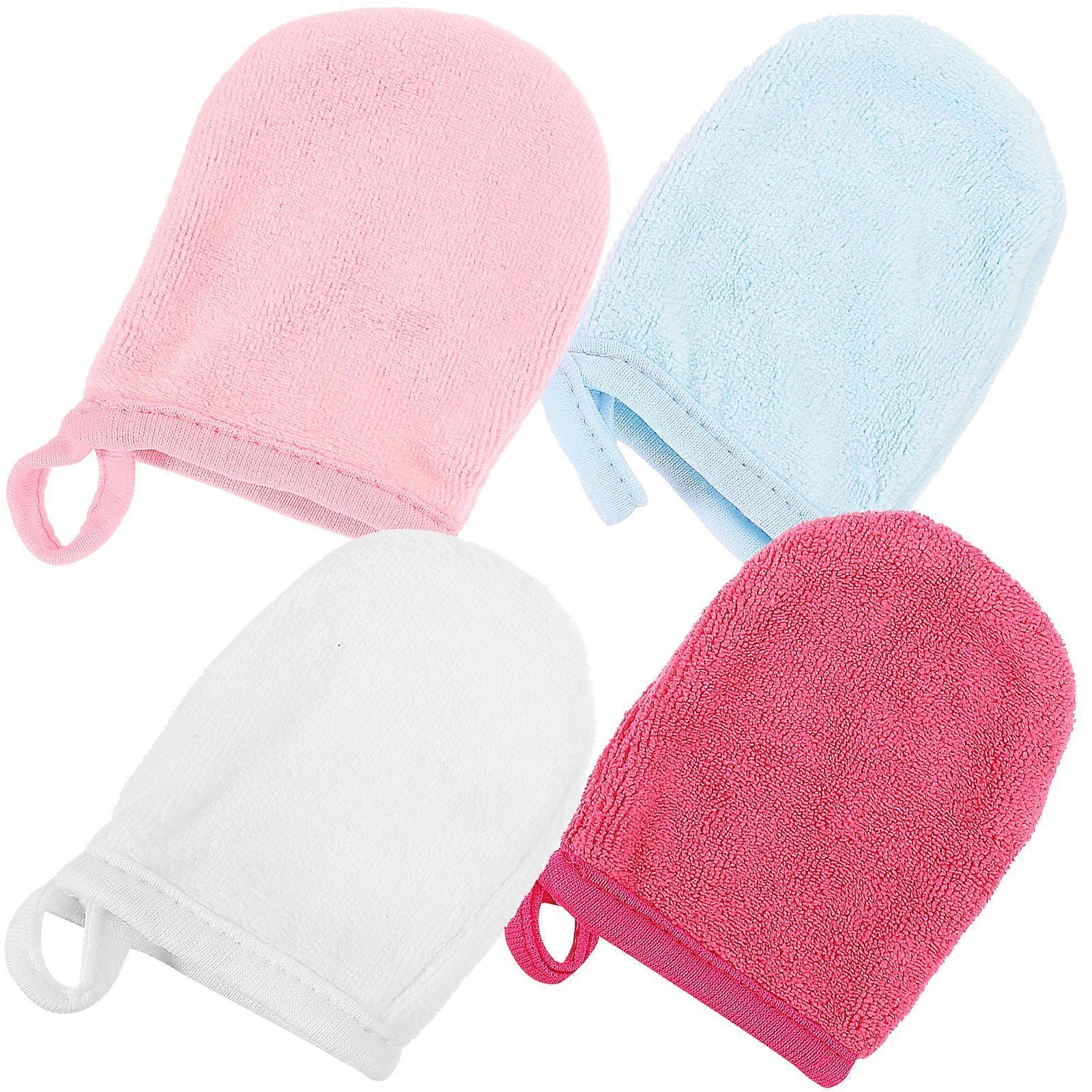 4Pcs Face Cleaning Gloves Microfiber Facial Washing Gloves Makeup Remover Mitts Reusable Gloves