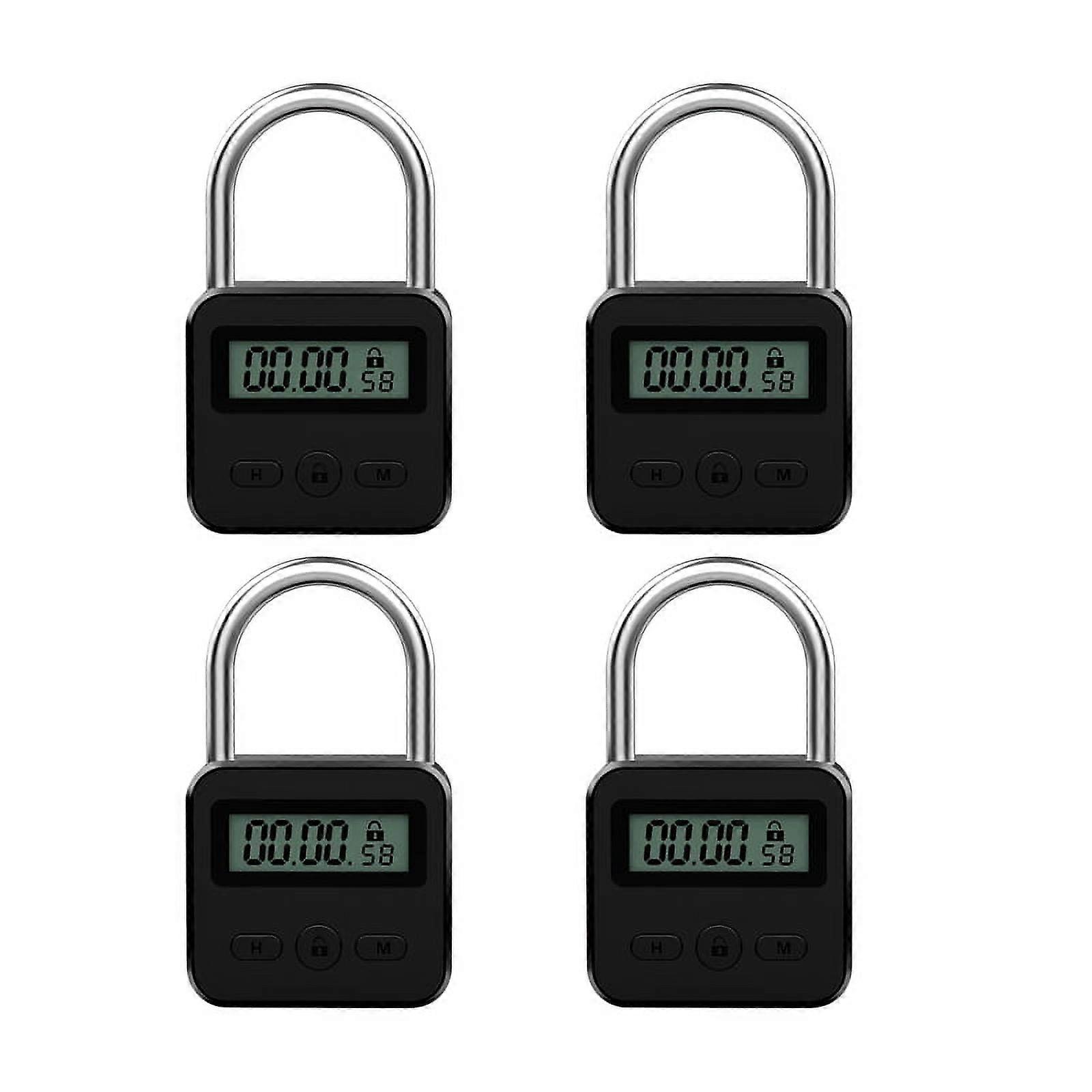 4X Metal Timer Lock LCD Display Multi-Function Electronic Time 99 Hours Max Timing USB Rechargeable Timer Padlock,Black