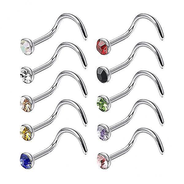 4x10pcs Nose Studs Rings Rhinestone Stainless Steel Body Piercing Rings 2.0mm