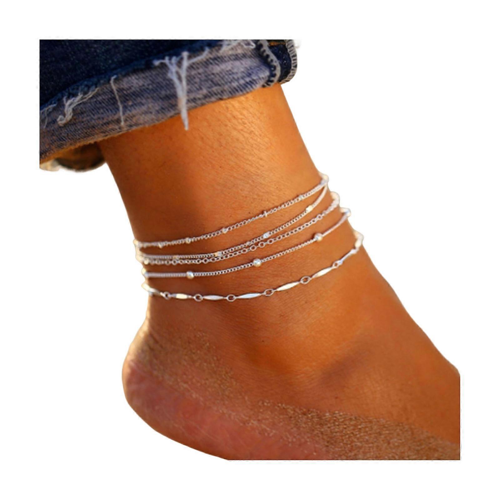 5 Pcs/Set Women Anklets Stackable Layered Hollow Chain Adjustable Length Simple
