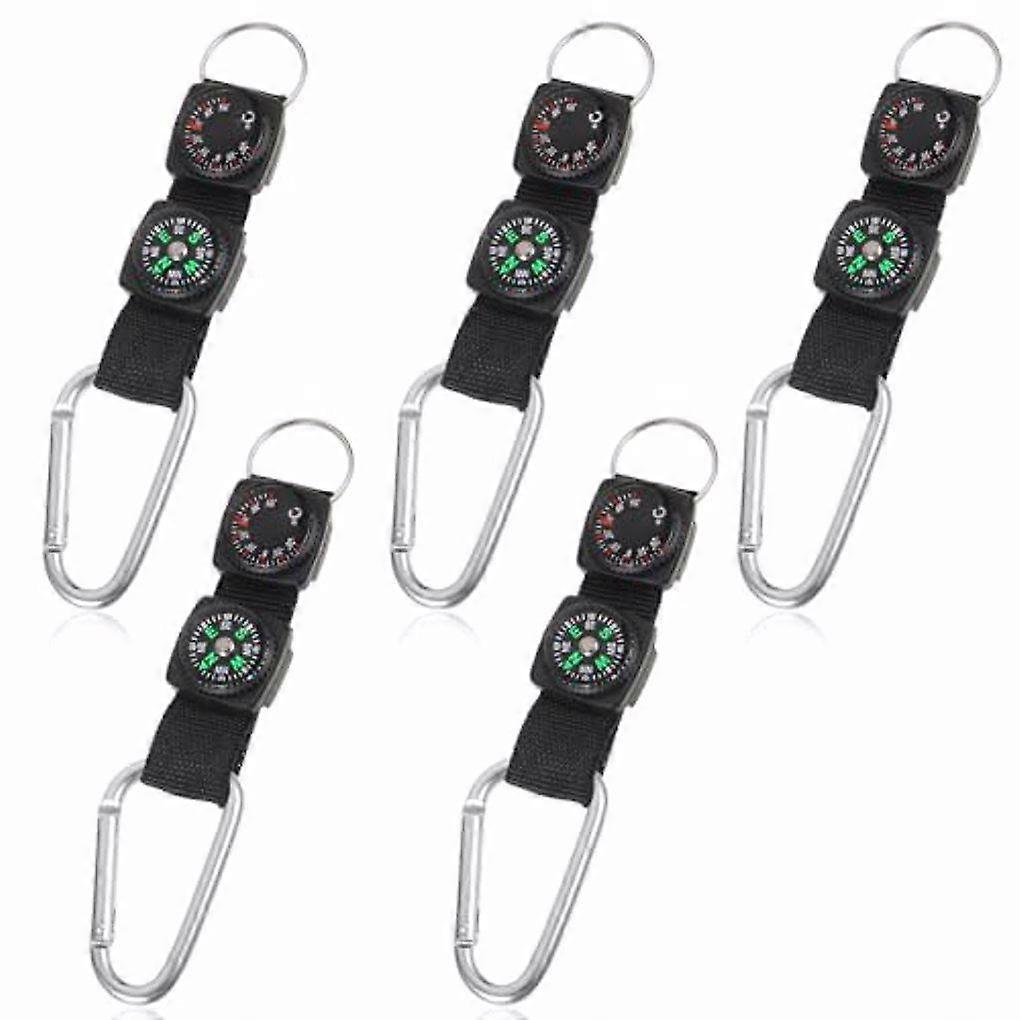 5pcs/set Multifunctional Thermometer Compass Keychain Sturdy Attachment Keychain Compass Thermometer