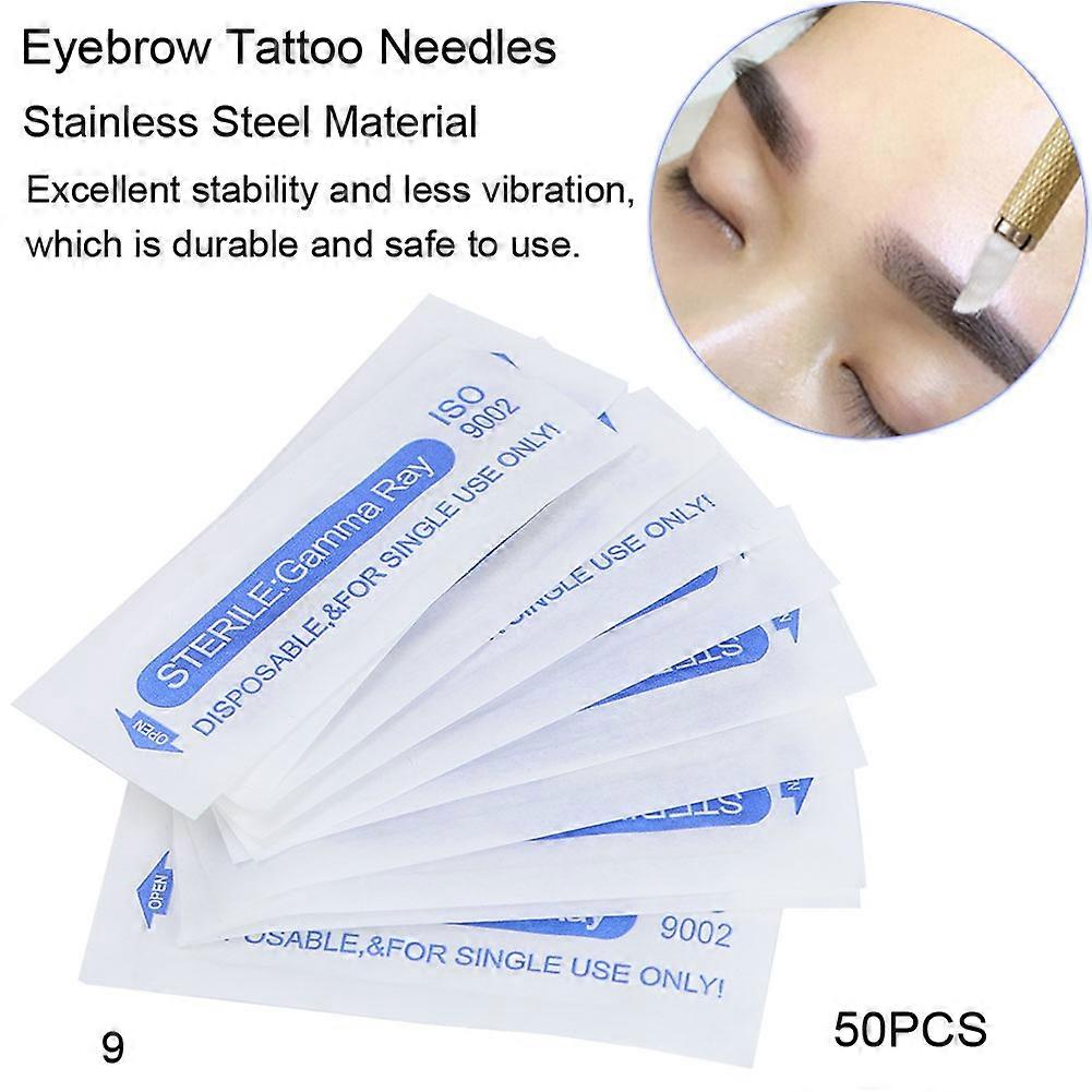 50pcs Microblading Tattoo Needles 9 Pin Stainless Steel 0.18mm