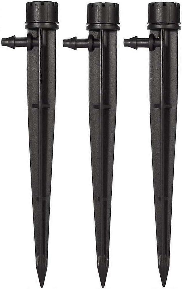 360 degree irrigation angle, suitable for 4/7mm tubing (inner/outer diameter). H: 21 cm, UV-resistant plastic. Double function drip and water jet, individual stop. Adjustable water outlet, you can open or close them according to your needs. Adjustable water flow. Adjustable flow rate from 0 to 13 gallons per hour, suitable for pots, tubs, ground covers, landscape gardens, etc. PE plastic drip irrigation spikes, lightweight, acid-resistant and alkaline, anti-corrosion, low temperature resistant, odorless, durable and long life in the ground. Drip irrigation spray up to 120 l/h flow rate, 0, 5m distance, 10 drip stakes can automatically water a larger area.
