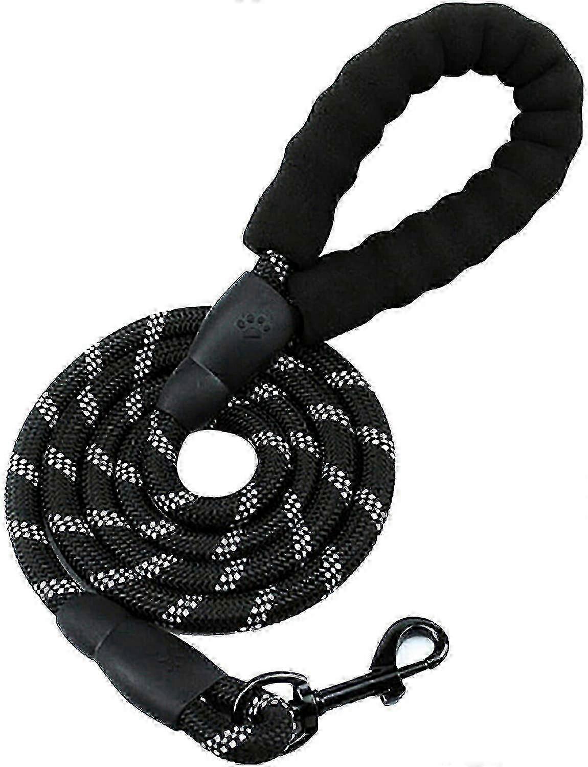 Reflective for nocturnal walks-: Highly reflective threads increase safety when walking at night and ensure that you stay both safe and visible when walking in the late evening. Softly padded handle- The handle is made of padded neoprene and foam. You will feel more comfortable and your hands will not be injured by sudden, strong pulling forces. Strong and durable- This dog leash rope is made of braided mountain nylon. Inside is a unique high density anti-bite layer design. Light and strong enough to control your dogs. 5 Foot Golden Ratio Design: 5 feet is the perfect length for walking the neighborhood or hiking or jogging on mountain trails. So your best friend stays close and you have enough freedom under your control. Safe & Heavy Duty locking mechanism: black exclusive locking hook, 360 rotatable, high hardness, corrosion resistance 100% secure locking mechanism minimizes the risk of your pet getting lost outdoors for unparalleled peace of mind. Product descriptions<br> Color: black<br> Tips: Based on the review and customer feedback, we recommend purchasing a steel dog leash if your dog's total weight exceeds 150 pounds.<br> Main features:<br> Robust and durable, thicker than ordinary dog leashes;<br> Highly reflective threads increase safety when walking at night, buy them and worry-free when walking at night;<br> Desired length (5 feet) to guide dogs with enough space;<br> Neoprene material foam padded handle dog leash, be soft and comfortable to use;<br> Heavy-duty clip hook made of black metal, rotatable 360 , not easy to rust, secure locking;<br> Easy to hold, but can be control over small, medium, or large dogs;<br> Product features:<br> Material: nylon rope<br> Length: 5 ft / 150 cm<br> Diameter: 1.27 cm<br> Color: black, blue<br> What is the content of the package?<br> 1 dog cord<br> Warm tips:<br> This leash will tighten when your dog pulls. Please do not attach this leash to your dog if you leave him alone.<br> If you have any questions, please contact us. We are happy to resolve your problems and will reply you within 24 hours.