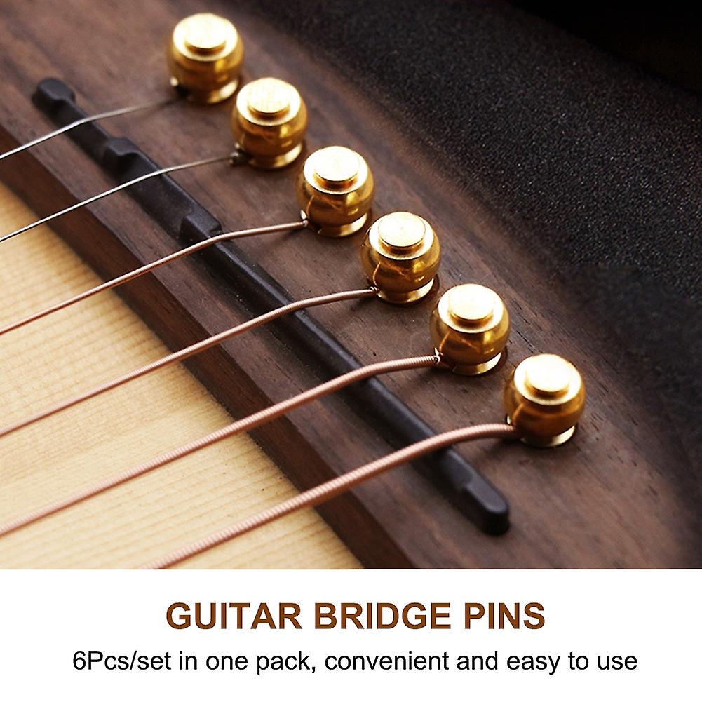 6Pcs/Set Durable Brass Guitar Bridge Pins for Folk Guitars Replacement Parts(Gold)