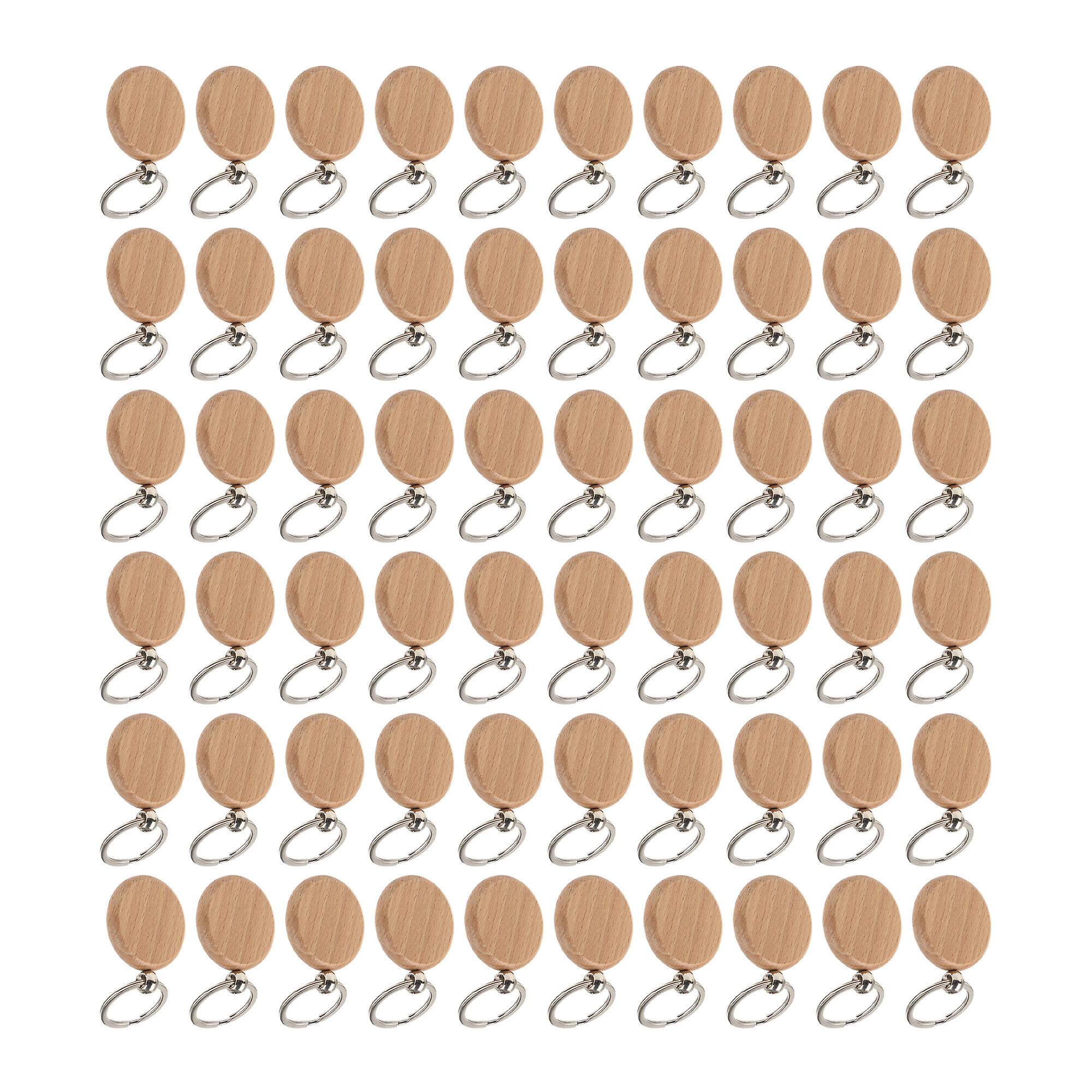 60 Pcs Blank Round Wooden Key Chain Tags for DIY Gifts 1.57 x 0.31 inch