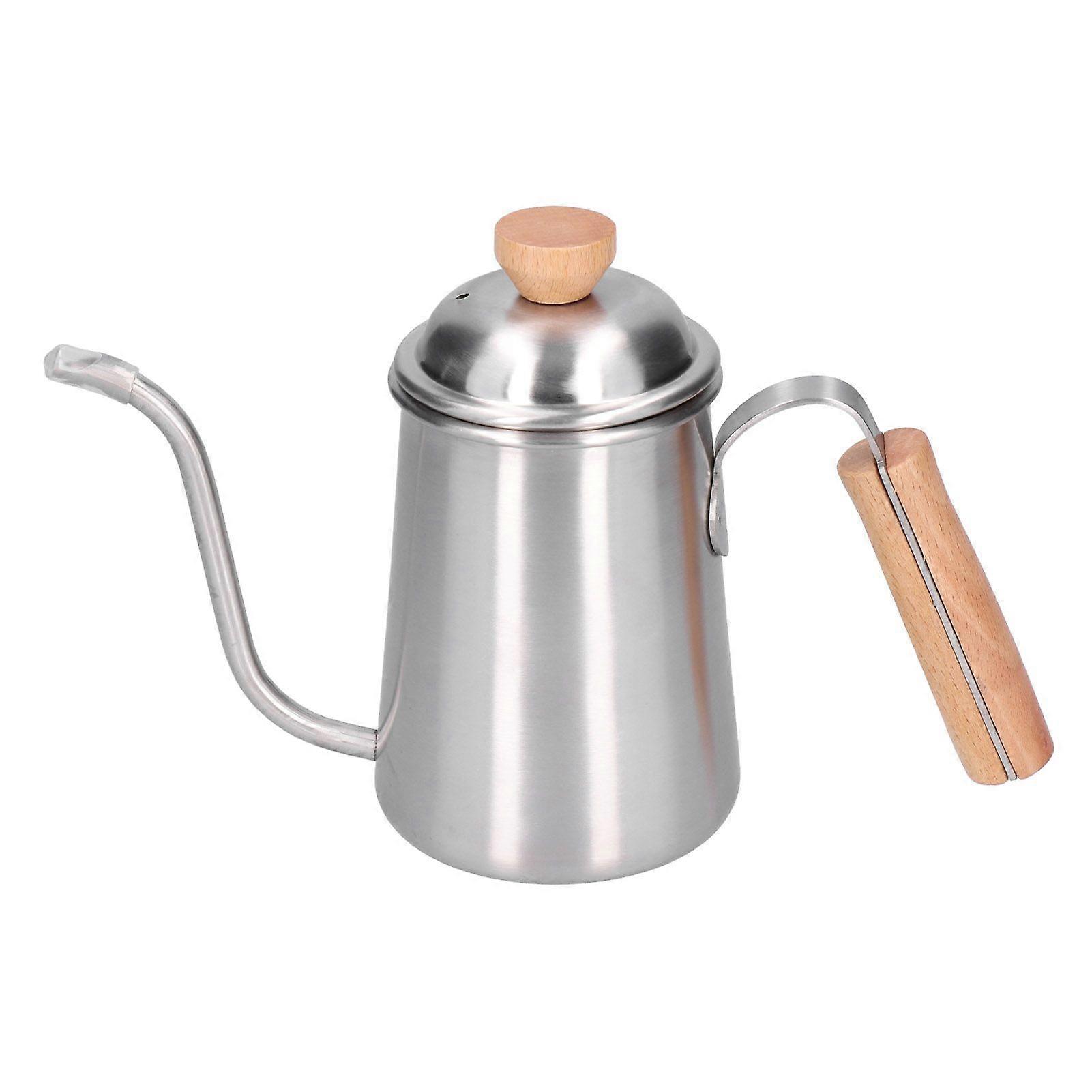 650ml Stainless Steel Drip Coffee Maker with Long Gooseneck Spout and Wooden Handle