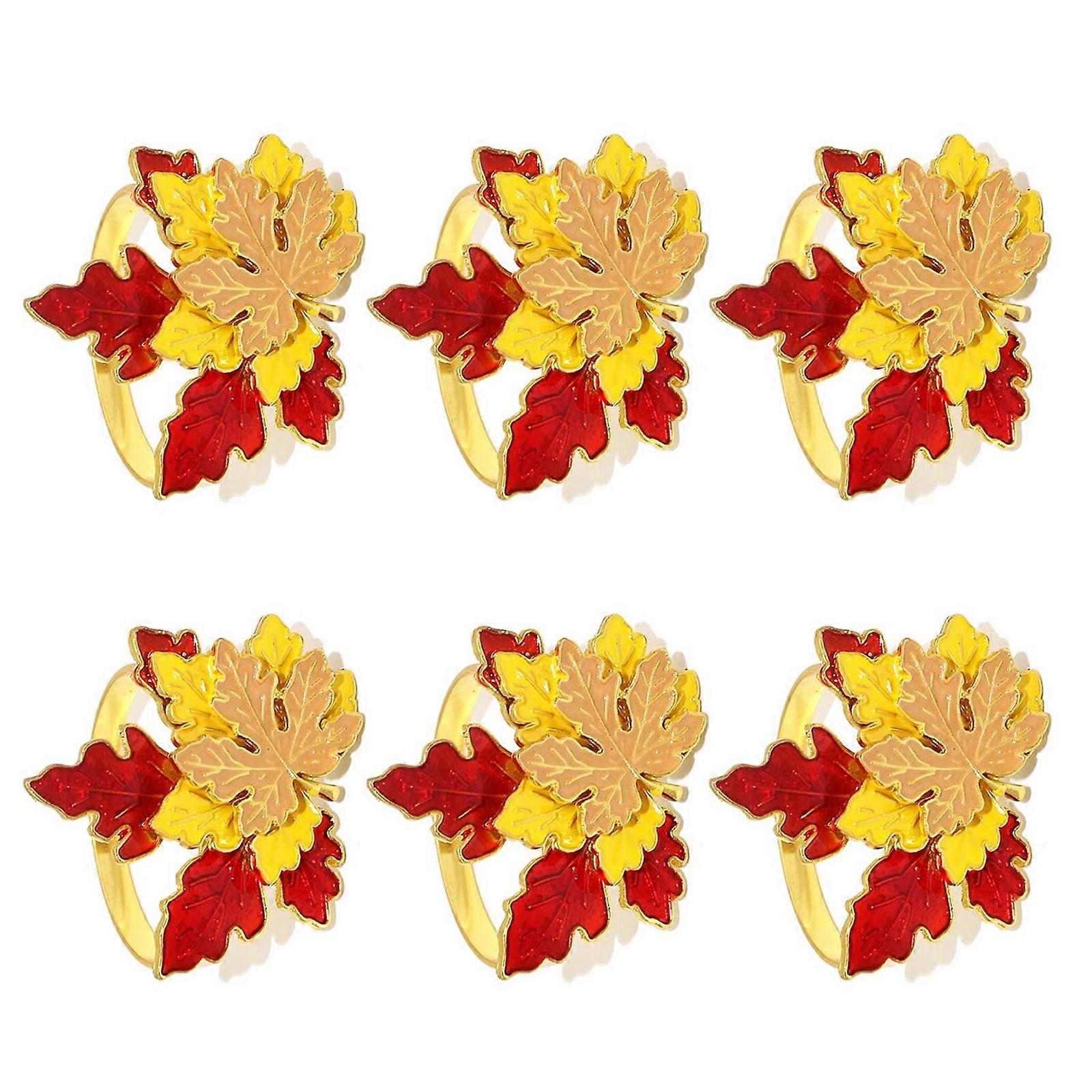 6Pcs Elegant Napkin Buckles Simple Maple Leaf Napkin Rings Wedding Parties Table Decoration for Dining Table Setting Multicolor