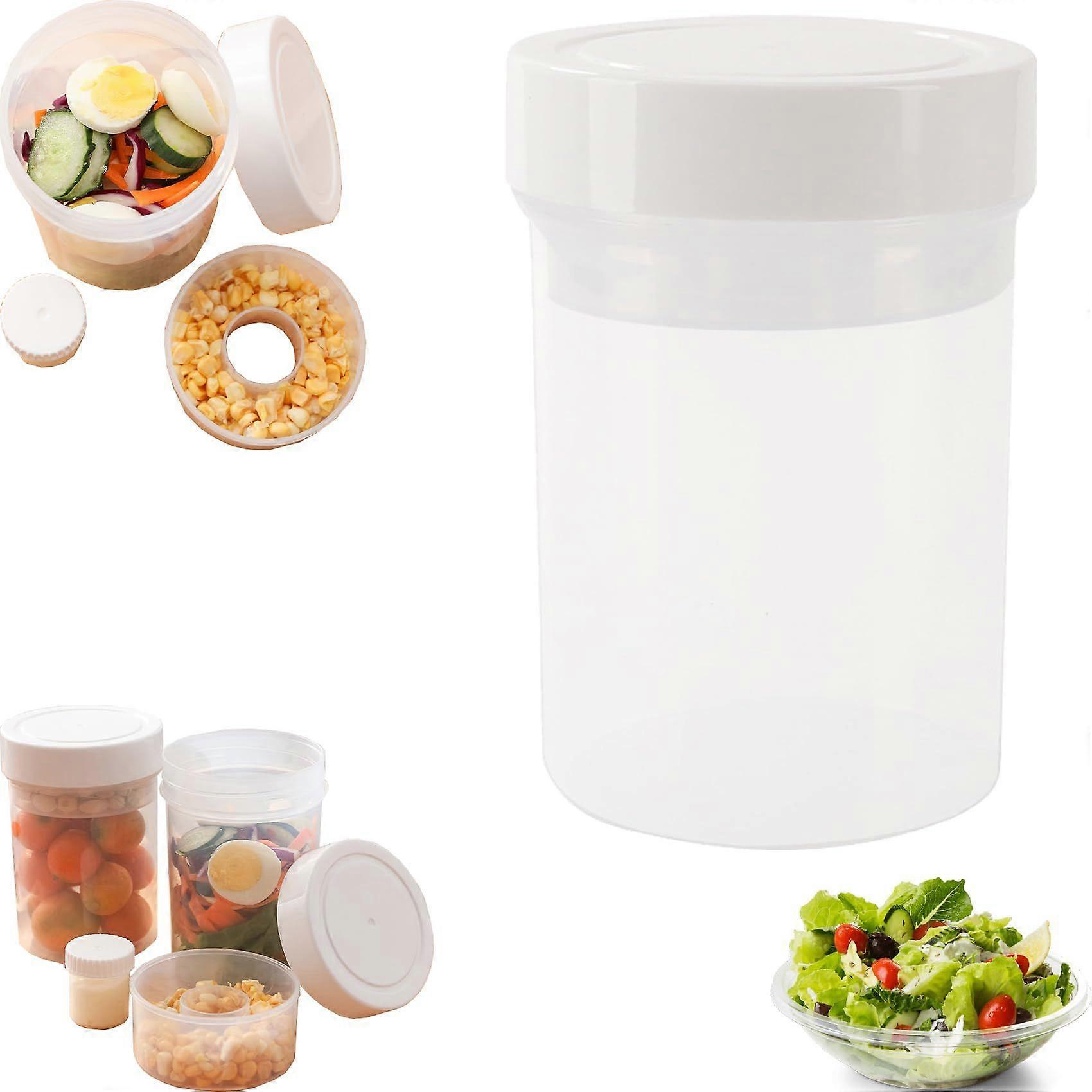 750ml Plastic Salad Jar with Built-in Dressing Cup Container, Leakproof Plastic Lunch Box with Wet/Dry Separation
