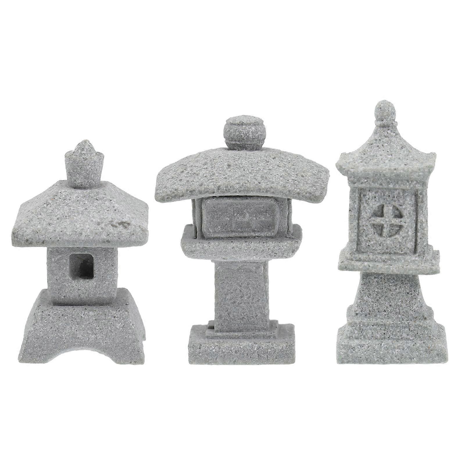 9Pcs Pavilion Tower Lantern for Decor Grey Micro Landscape Ornament Chic