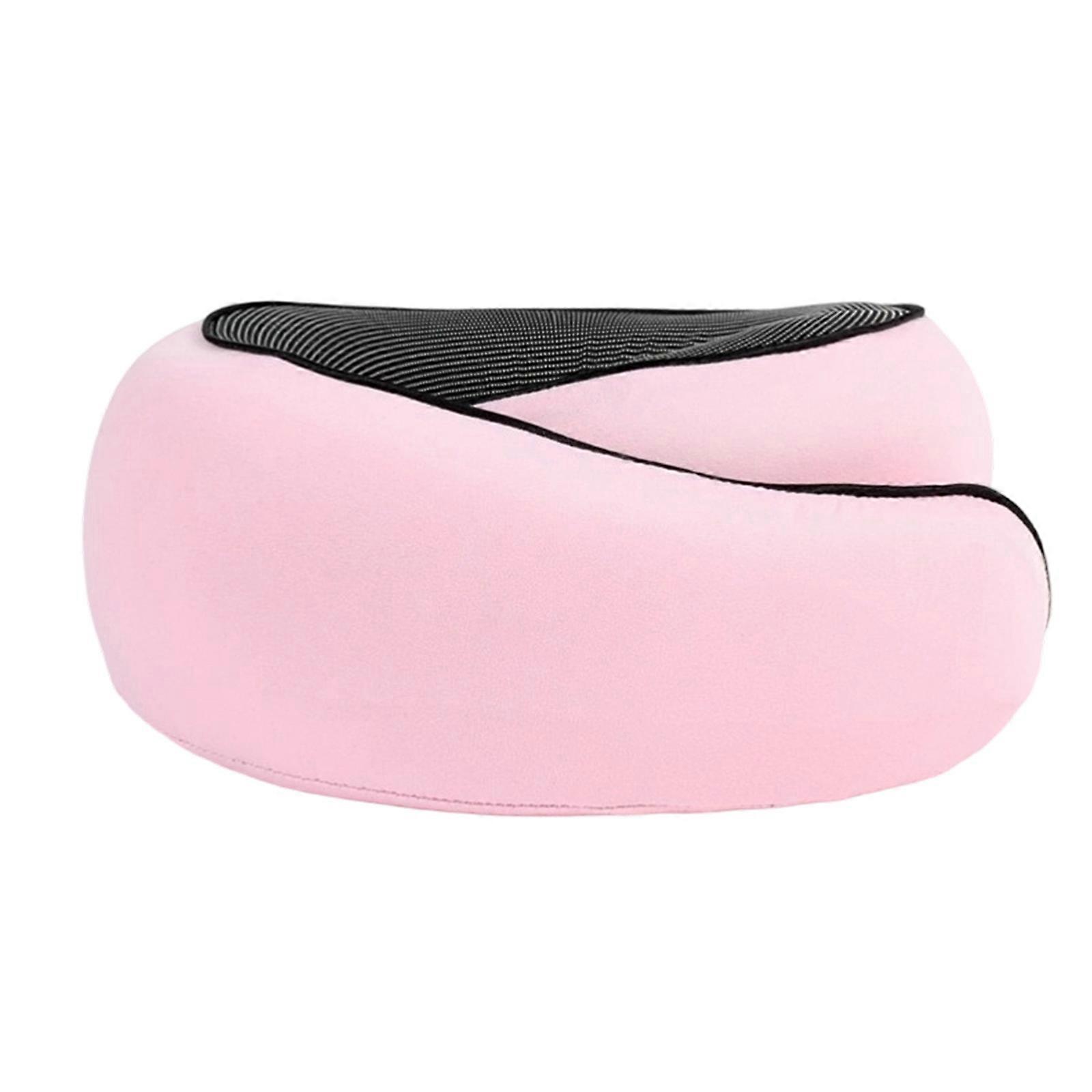 Adjustable Cervical Support Pillow With Airflows Fabric For Business Trips Long Flight Commuting Pink