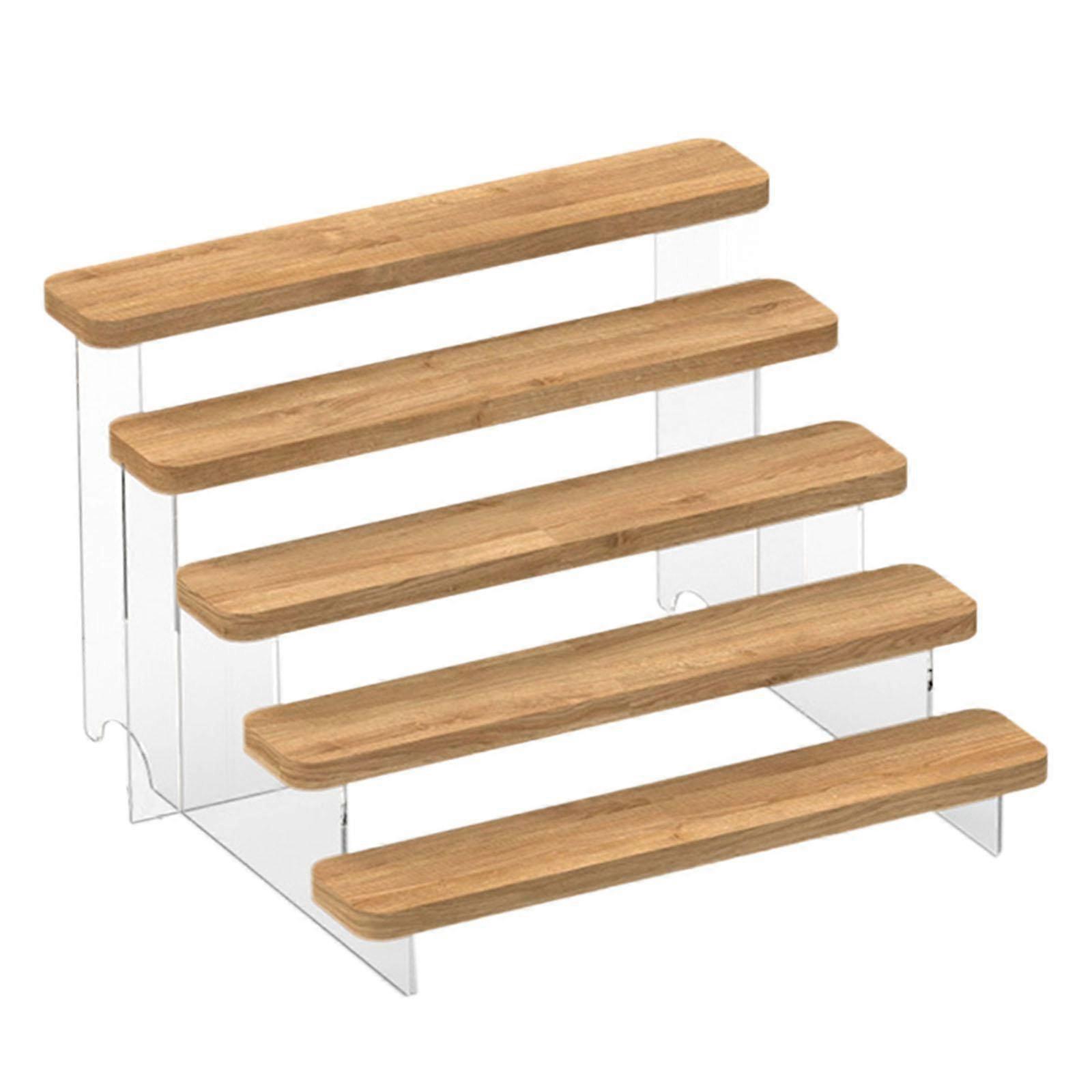 Acrylic Display Riser Wood Tiered Display for Decorations Dolls Collectibles 5 layer