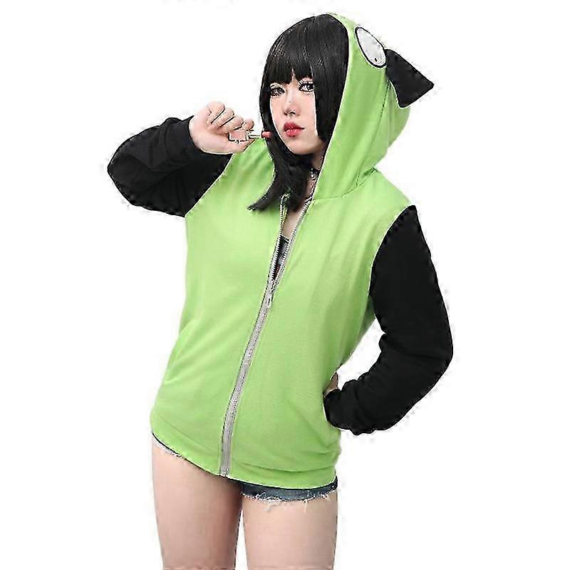 Anime Invader ZIM Cosplay Hoodie Mens Womens Casual Hooded Zip Up Pullovers Jackets Sweatshirts with Ears for Halloween Costume