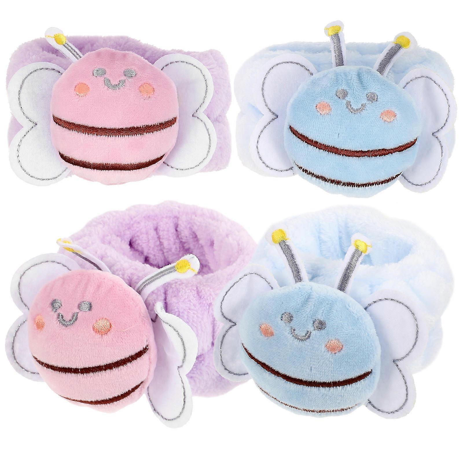 Face Wash Bee Shaped Wristbands For Women Water Absorption Comfortable Wear Assorted Color 4Pcs