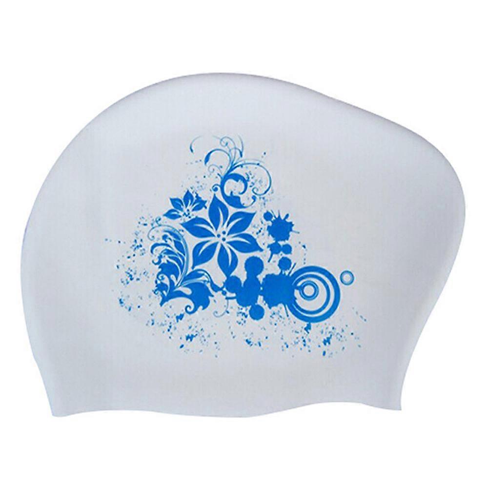 Swim Cap, Silicone Cap, Long Hair Cap, Flower Print