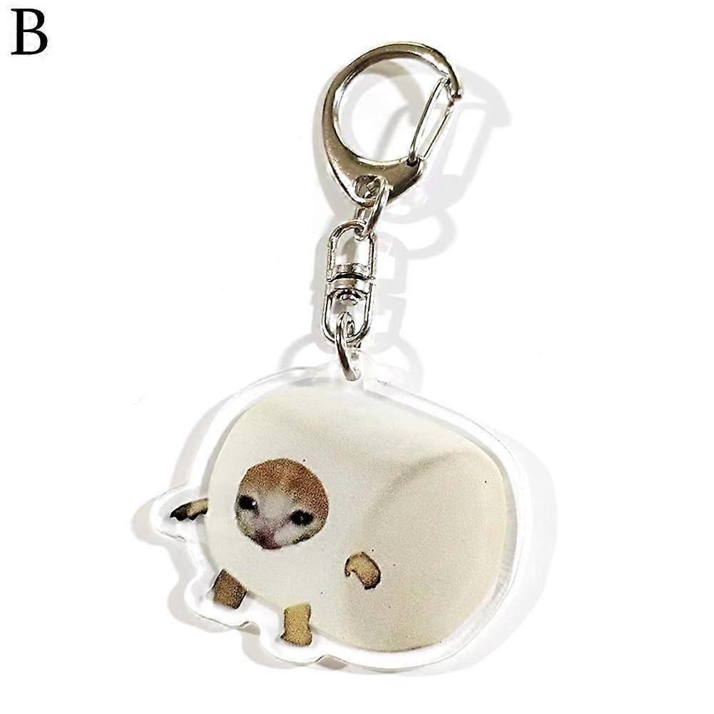 Portable Happy Funny Cat Keychain Food Cat Head Bag Pendant Keyring Men