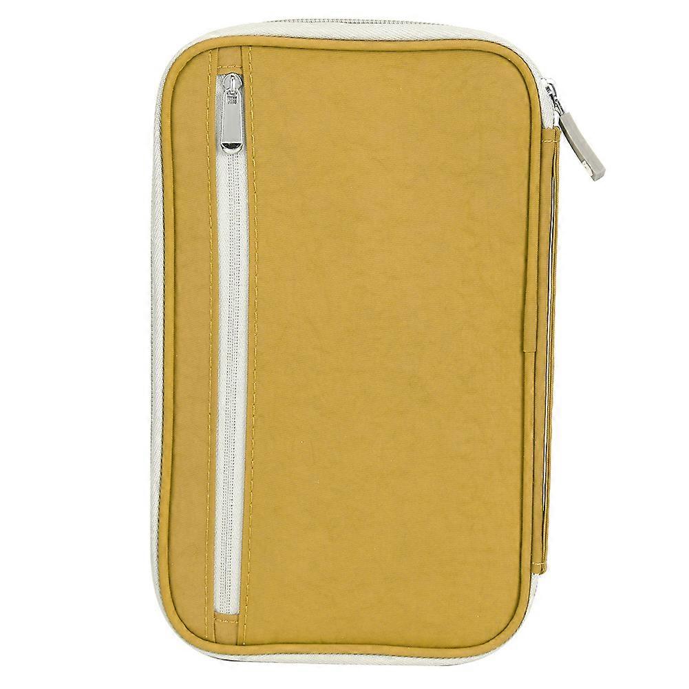 Portable Multipocket Nylon RFID Anti-Theft Travel Passport Document Storage Bag OrganizerYellow