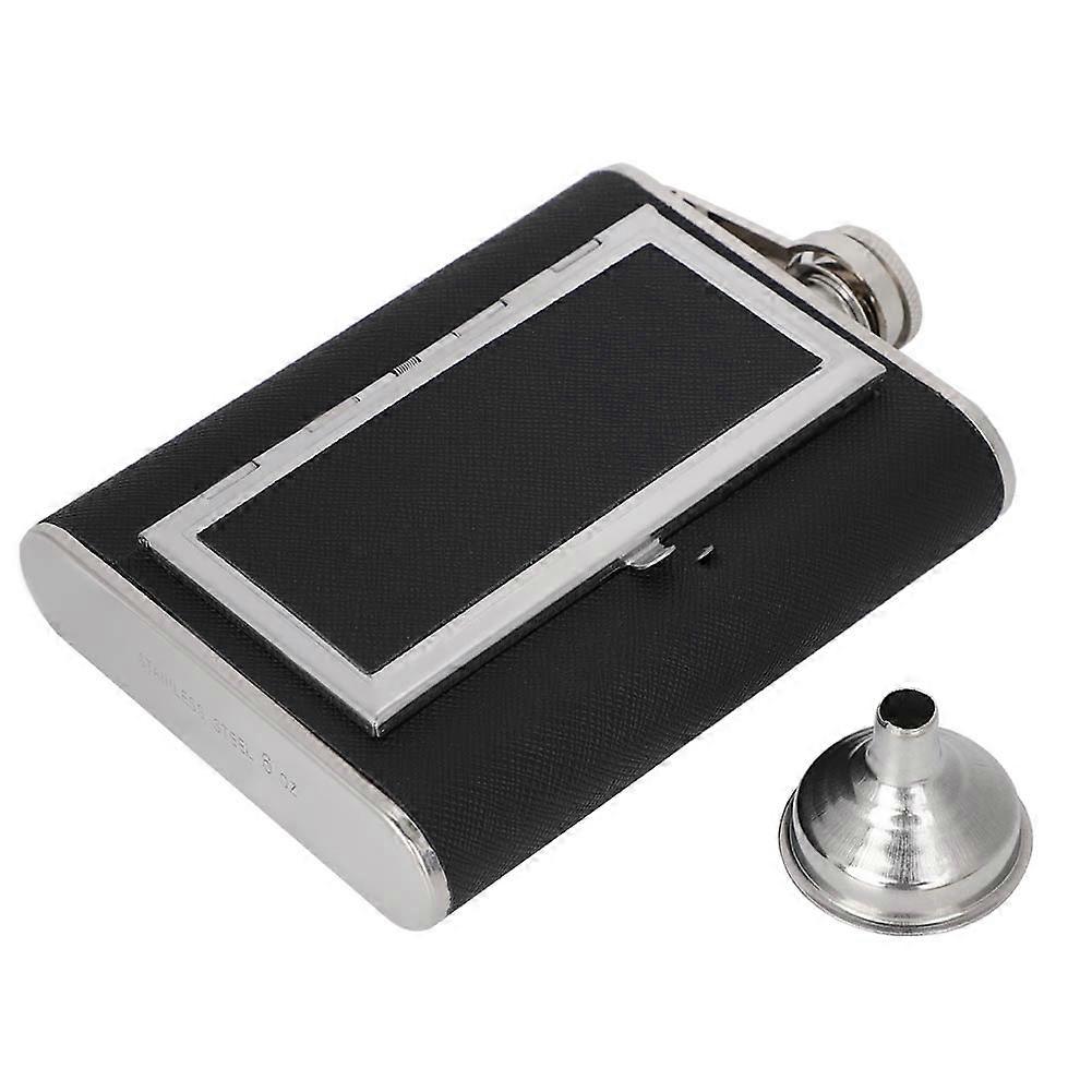 Portable Stainless Steel Cigarettes Case Hip Flask with Funnel for Home Outdoor(Black)