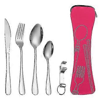 Bærbart rustfritt stål 5-delt utendørs reiseservise (rosa) - FFY