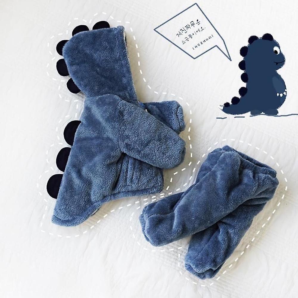 Children's coral velvet dinosaur pajamas Autumn and Winter home clothes set for Boys and Girls