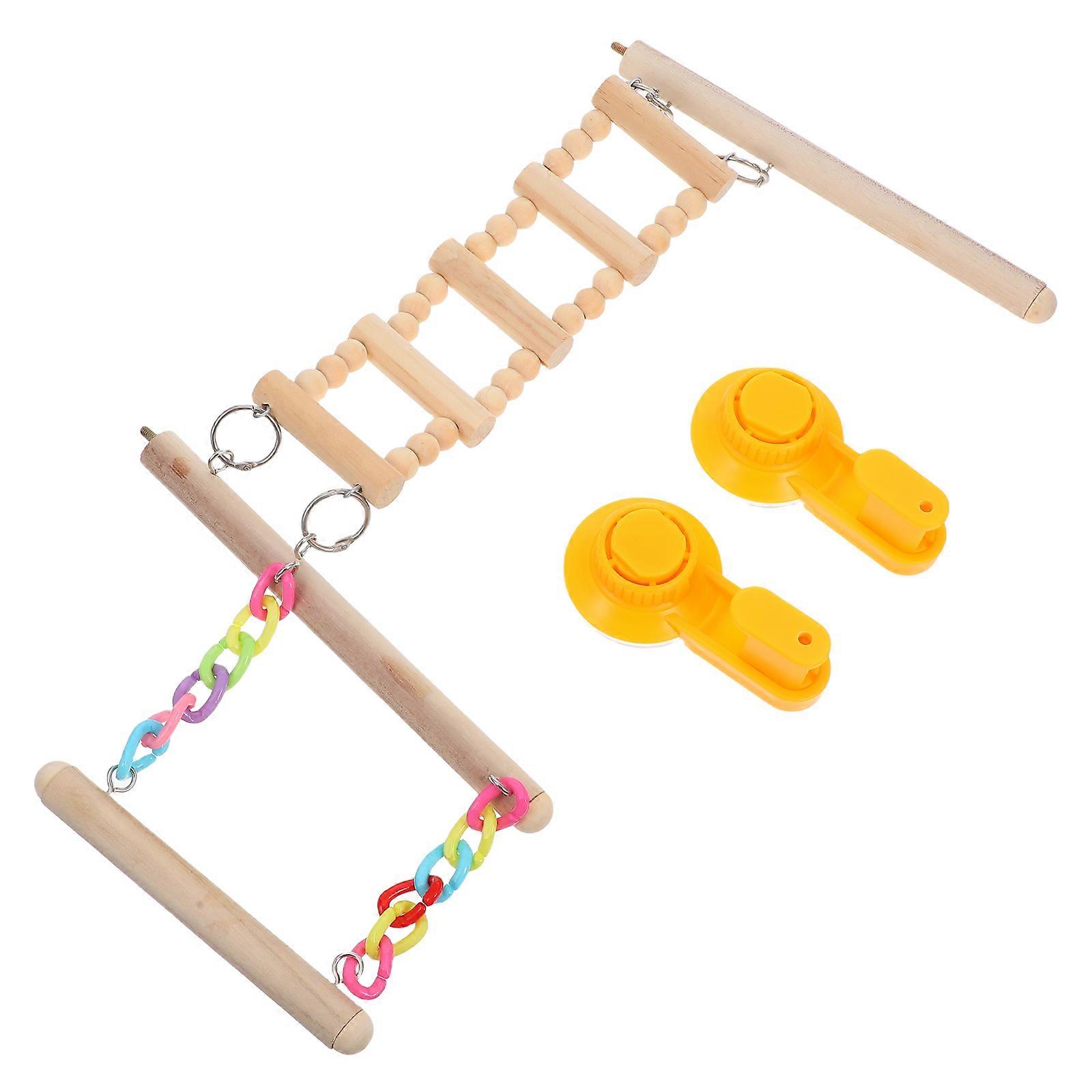 Bird Perch Suction Cup Toy for Parakeet with Swing and Climbing Ladder