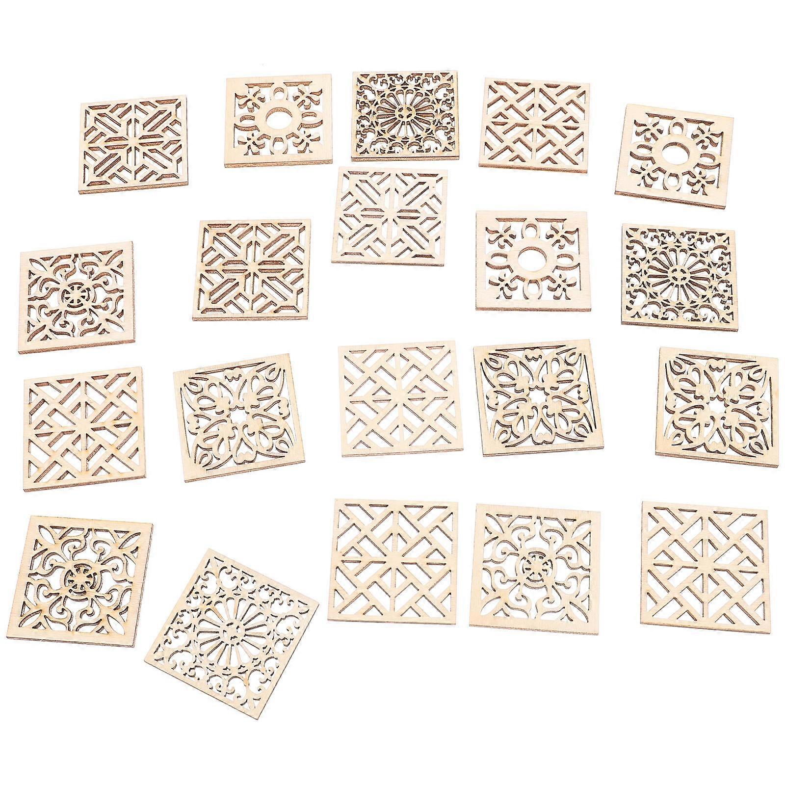 Flower Cutouts Square Shape Wooden Pieces for DIY Craft 100Pcs Beige
