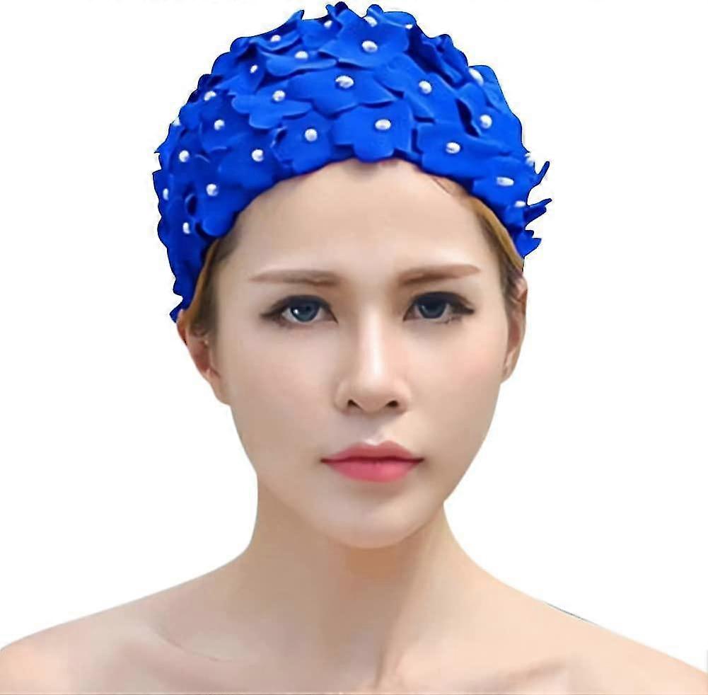 Floral swim cap for women, fashionable stretchy swim cap for long hair