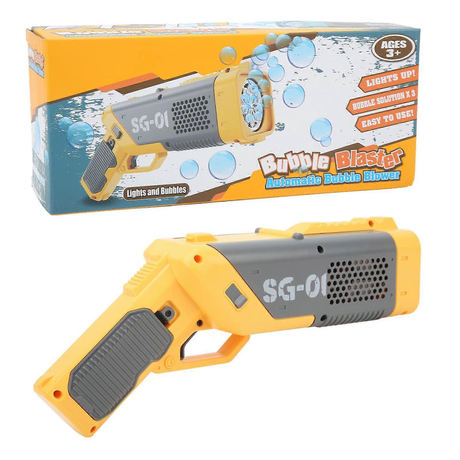 Bubble Machine with Lights Powerful Motor Portable Automatic Bubble Maker for Children Over 3 Years Old for Parties Yellow