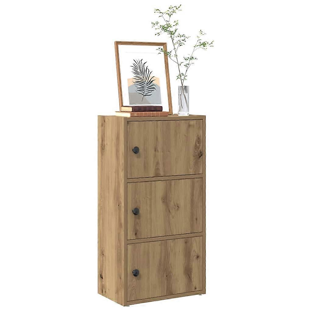Dieses Bücherregal bietet die perfekte Lösung für die Organisation deiner Bücher und ist gleichzeitig eine stilvolle und funktionelle Ergänzung deiner Einrichtung. Starkes und langlebiges Material: Holzwerkstoff ist ein langlebiges und robustes Material mit einer glatten Oberfläche, das gegen Feuchtigkeit, Verformung und Rissbildung beständig ist, wodurch es eine zuverlässigen Wahl für die Herstellung von Möbeln ist.Reichlich Stauraum: Dieser Schrank verfügt über mehrere Einlegeböden mit Türen und bietet somit reichlich Platz, um deine Büchersammlung, Zeitschriften und Dokumente ordentlich aufzubewahren.Praktische Tür: Dank der Tür lassen sich deine Sachen ordentlich, geschützt und außer Sicht aufbewahren.Flexibler Türeinbau: Die Tür des Schranks kann je nach Belieben und Bequemlichkeit links oder rechts angebracht werden.Pflegeleicht: Dank seiner glatten Oberfläche lässt sich der Wandschrank mit einem feuchten Tuch leicht reinigen und erfordert wenig Pflege. Achtung:Um ein Umkippen zu vermeiden, sollte dieses Produkt mit der mitgelieferten Wandhalterung gesichert werden. Farbe: Artisan-EicheMaterial: HolzwerkstoffGesamtabmessungen: 40 x 24 x 77 cm (B x T x H)Fachabmessungen (jeweils): 36,5 x 24 x 23 cm (B x T x H)Zusammenbau erforderlich: Ja
