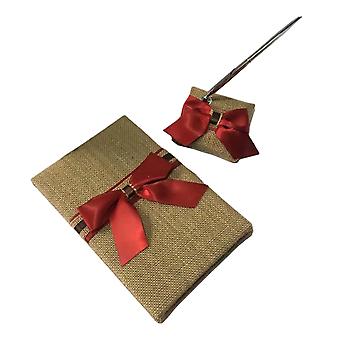 Wedding Burlap Embellished Satin Wedding Guest Book Pen and Stand Set Red