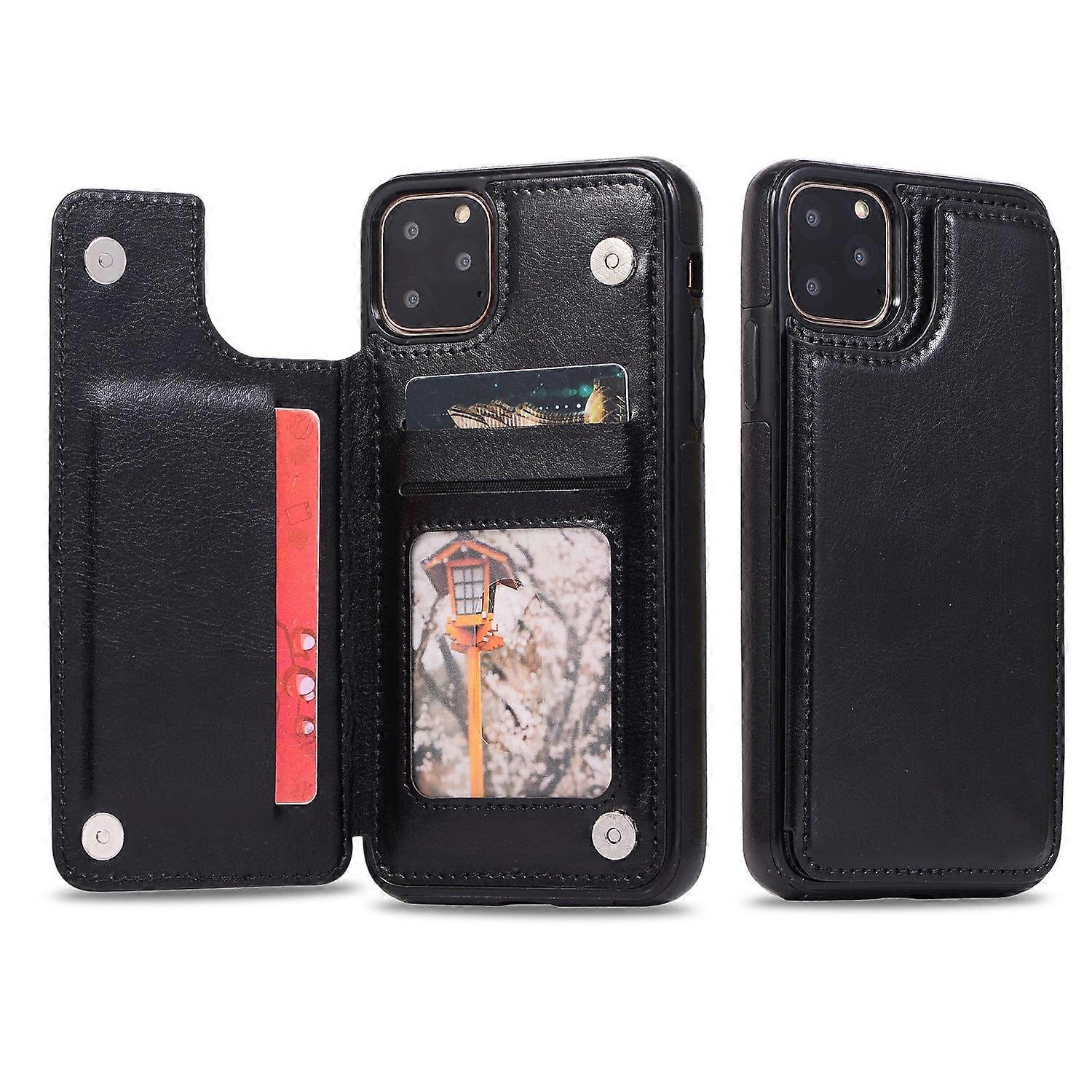 Case For Iphone 14 Pro Black Leather Crazy Horse Pattern