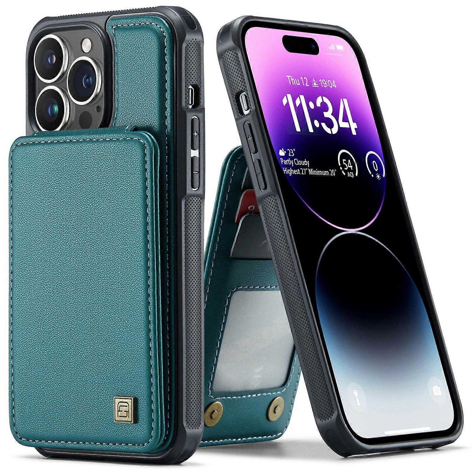 Case For Iphone 14 Pro Blue Green Card Slot Rear Bracket Leather