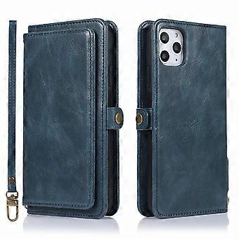 Case For Iphone 14 Pro Blue Multi-card Split Leather Multi-function Card Slot Retro Wallet